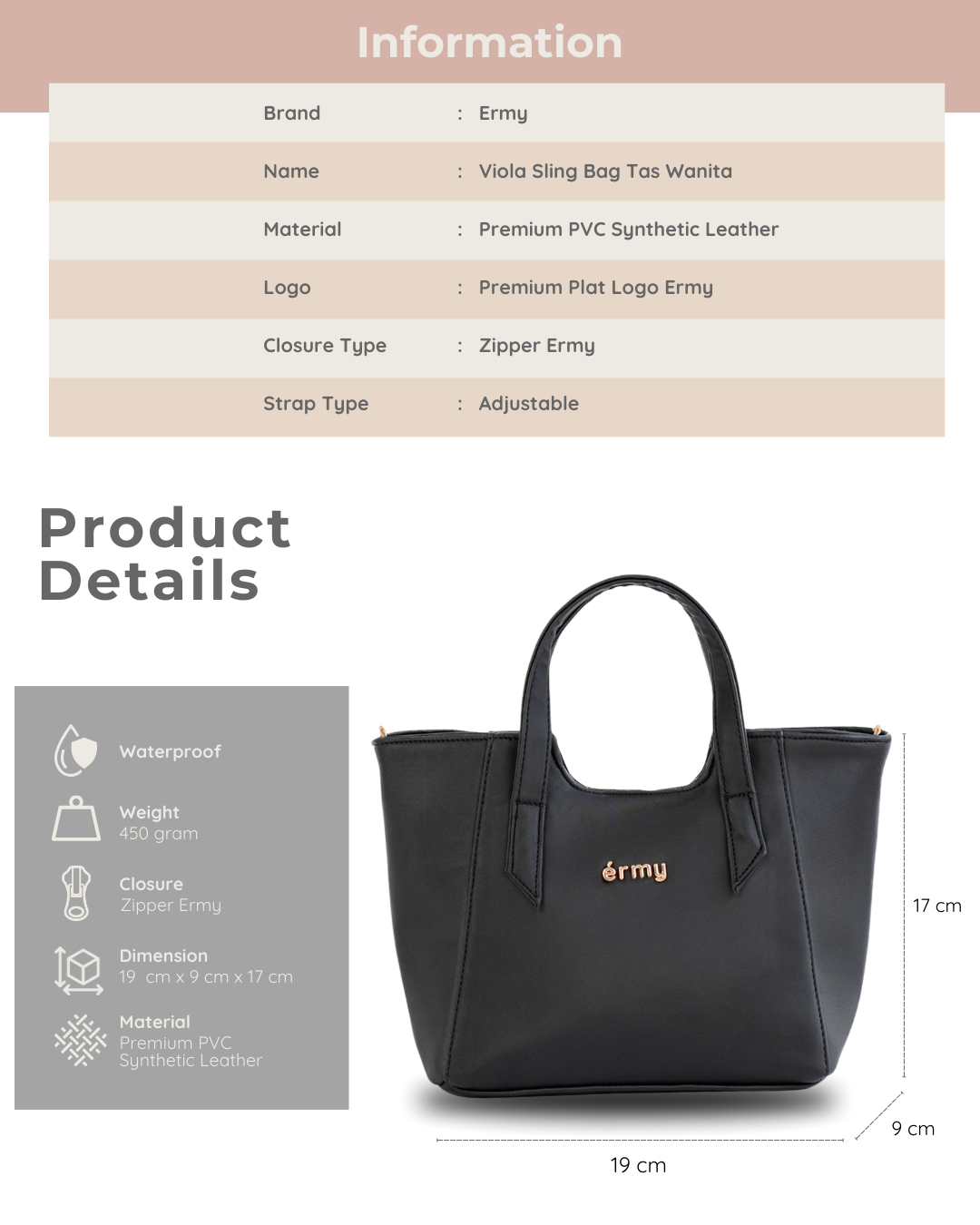 Ukuran compact namun fungsional, nyaman digunakan sebagai handbag maupun sling bag.