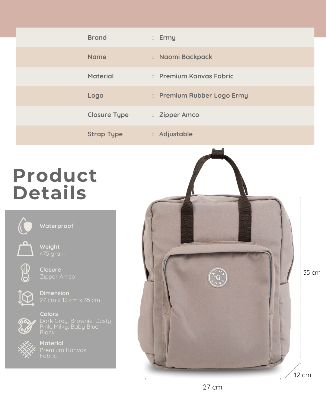 ERMY - Naomi Ransel Kanvas Waterproof Tas Wanita
