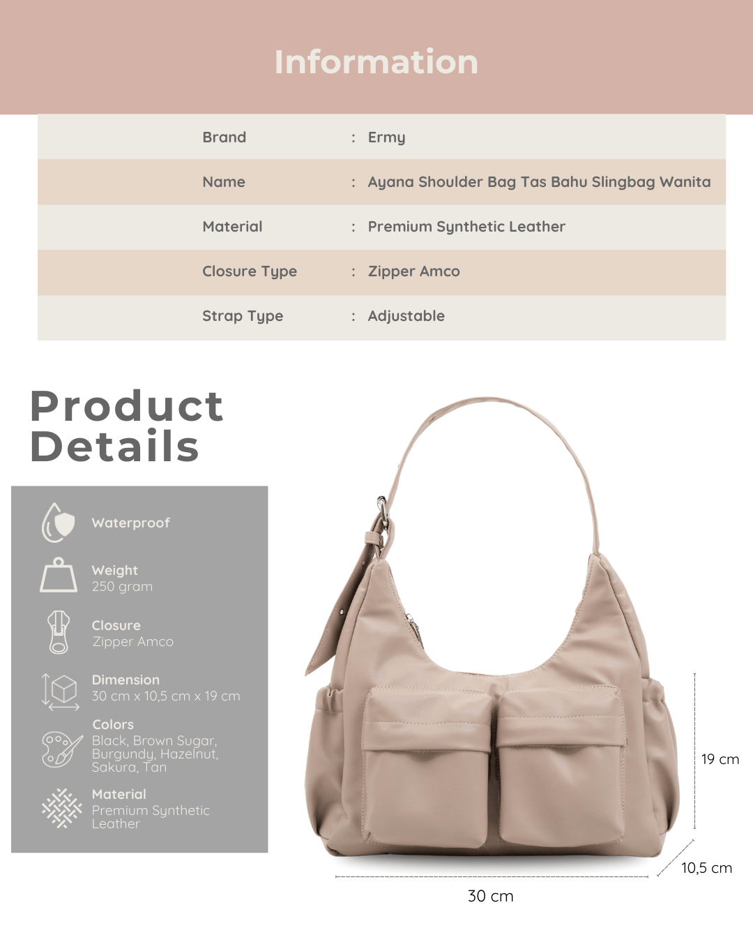 - P : 30 Cm L : 10,5 Cm T : 19 Cm